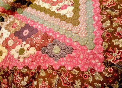 I found this brown fabric with flowers online at atelier Soed Idee. It will become the border of the Wintry Hexies.